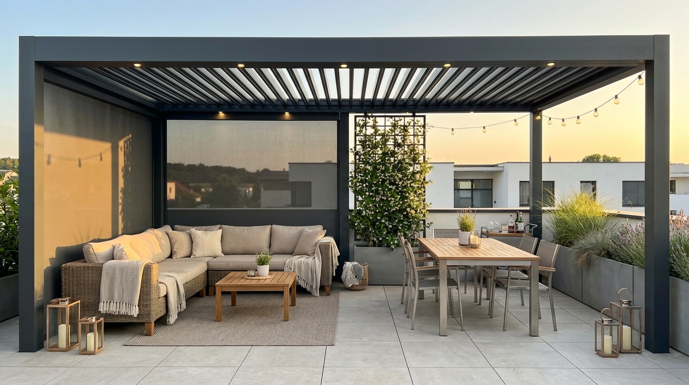 Si vous disposez d’une pergola bioclimatique avec des lames orientables, vous avez déjà une longueur d’avance. En ajustant l’inclinaison des lames, vous contrôlez la luminosité et la ventilation naturelle sans effort. C’est la solution la plus élégante et la plus efficace pour gérer l’ensoleillement tout au long de la journée.